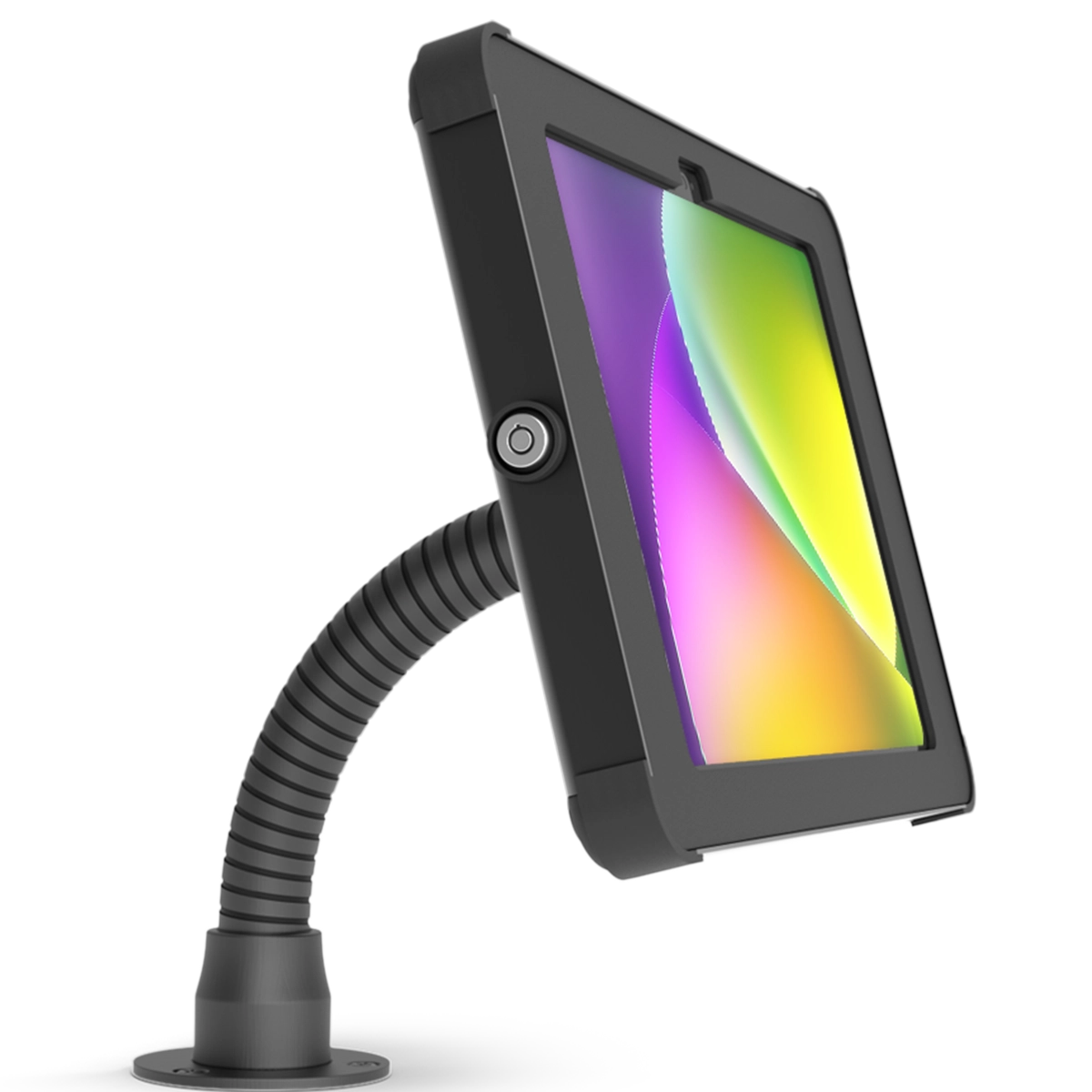 Our flex tablet stand features a fully articulated design, allowing you to position your screen at any angle. This adaptability is perfect for environments that require frequent adjustments, while also concealing cables down the stand stem for a clean look.