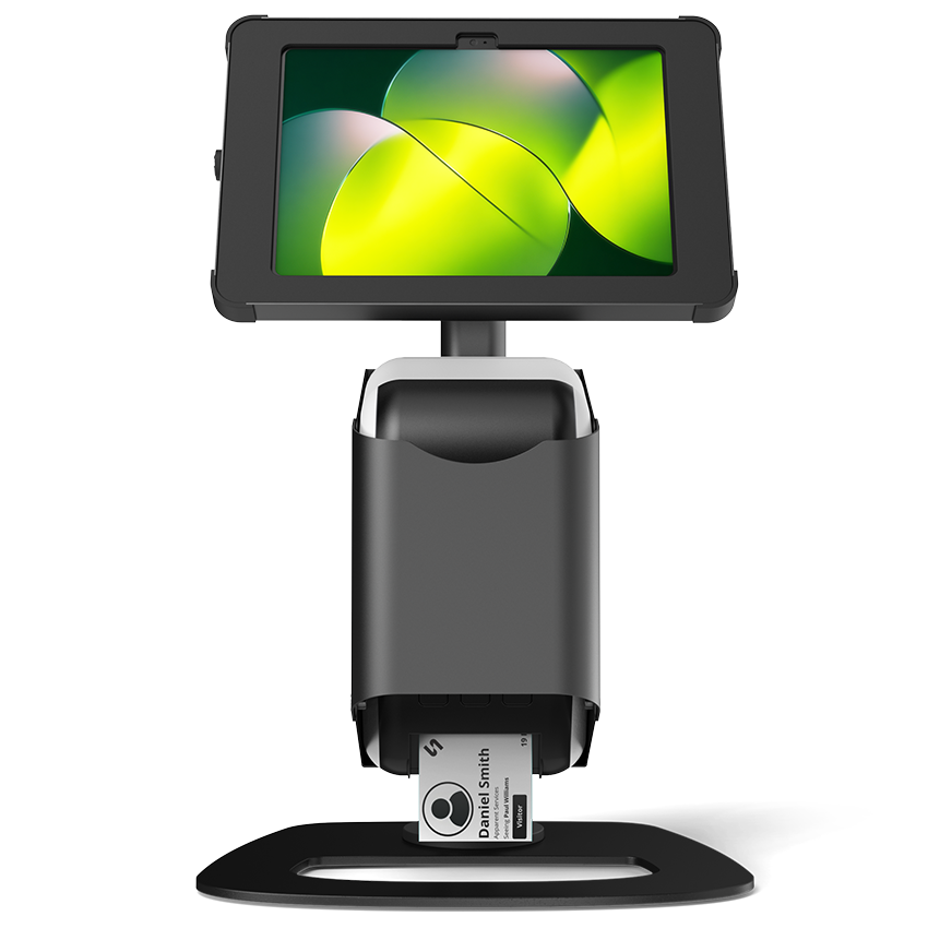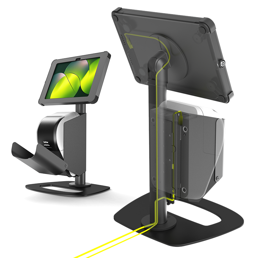 The X Print Mini is a sleek desktop stand that reimagines visitor management. At just 50cm tall, the X Print Mini delivers functionality in a compact footprint. Built for aesthetics and access, it allows quick label roll changes, conceals cables, and pairs wirelessly with Brother label printers. Designed for Apple iPad, Samsung Galaxy Tab and Microsoft Surface, it’s sturdy, portable, professional, and keeps spaces clean and clutter-free.