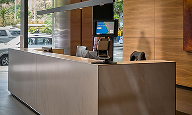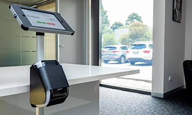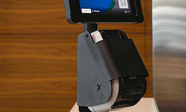 Our T-Series range of printer kiosks are designed to catch the attention of guests with its prominent call to action. They also feature an adjustable tablet view angle, accommodating users of all heights for a comfortable check-in experience. The labels print into a clearly visible catcher, making it easy for both standing guests and those in wheelchairs to retrieve their labels. Additionally, the hidden cables and single mains power cable ensure a neat and tidy reception area.